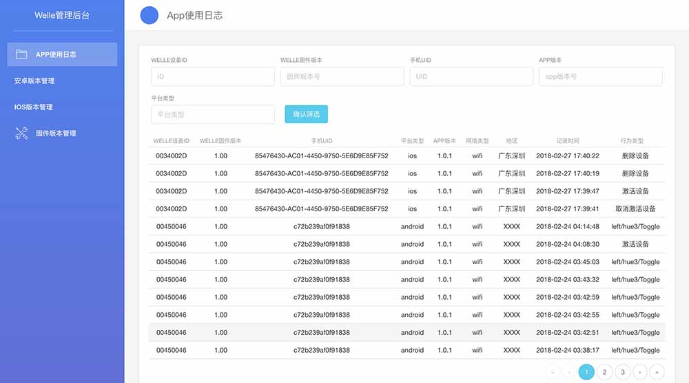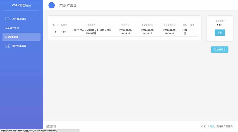 后台页面的实现及后端渲染后台页面,App接口的实现,七牛云镜像存储上传的最新Android版本apk和Welle硬件管理软件,部署ubuntu系统网站实现上线操作
